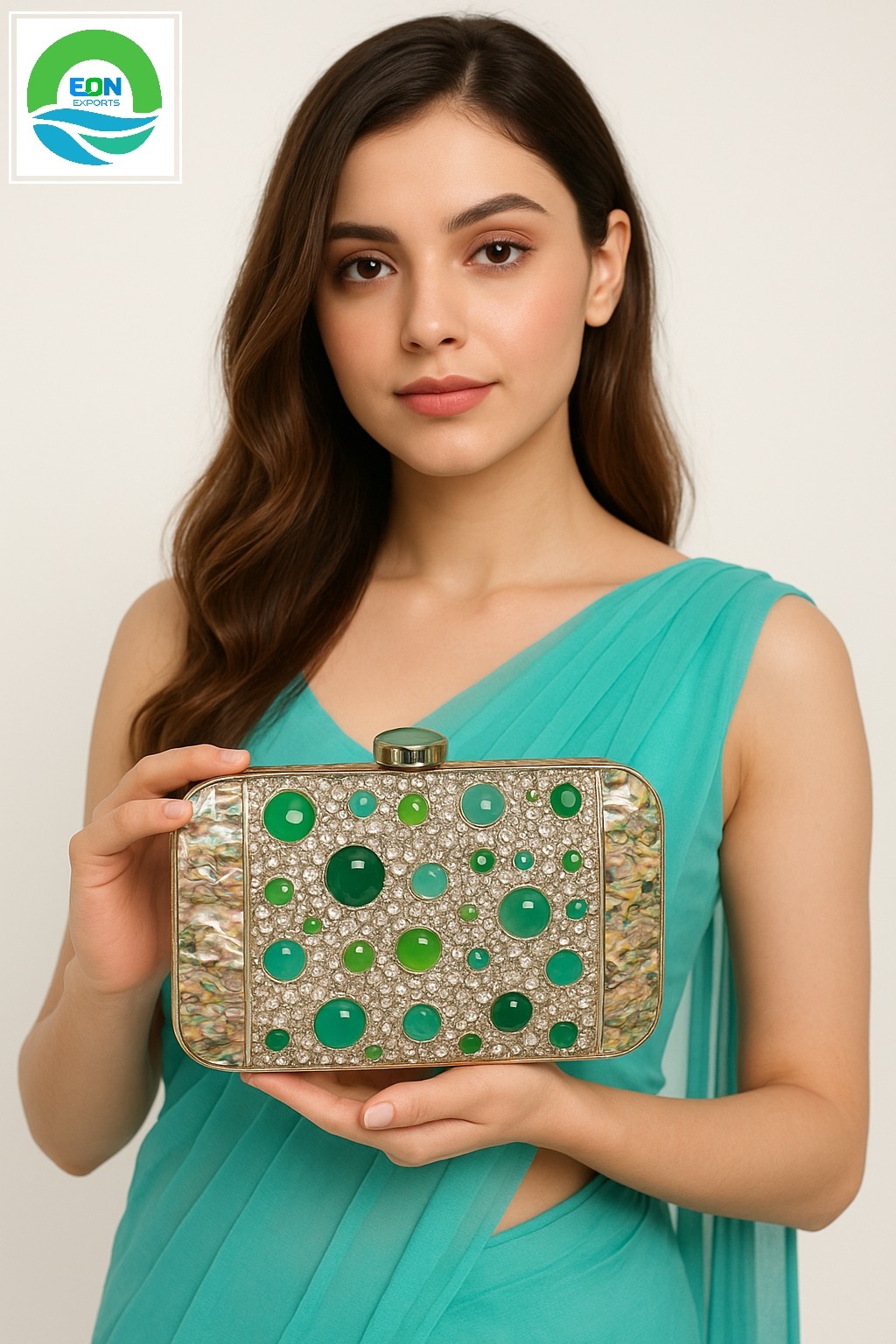 Eon Exports India are offering our customers a wide range of Clutch Purse Natural Stone Manufacturers India that are nicely stitched by our designers These Clutch Purse Natural Stone Wholesalers India are known for their tensile strength fine stitching and uniform dyeing features Our range of Clutch Purse Natural Stone Exporters India are available at most competitive prices. Clutch Purse With Natural Stone Manufacturers, Suppliers, Exporters, Wholesalers, Wholesale, Retailer, Factory, Online, Shops, India