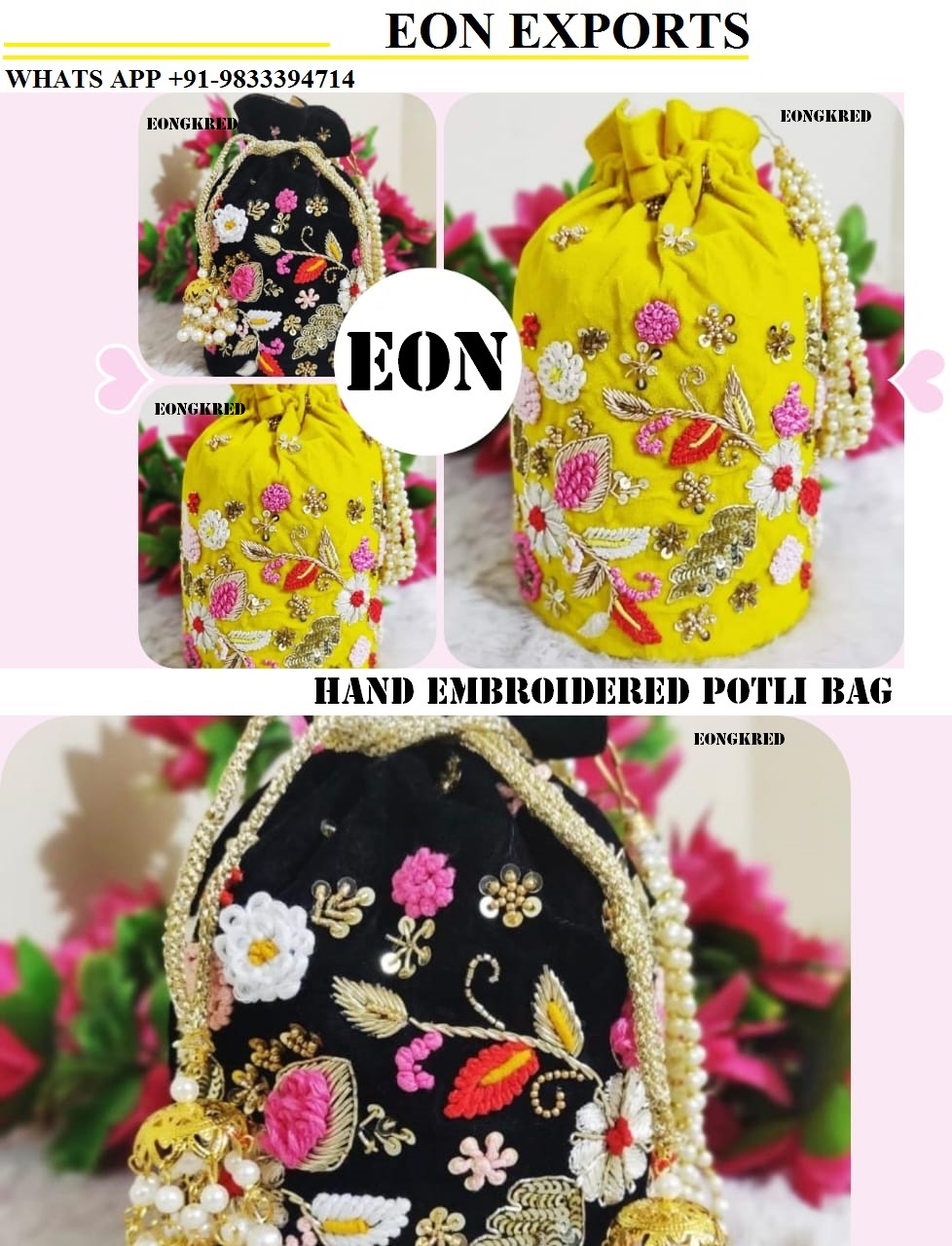 Handmade Embroidered Potli Bags Manufacturers, Suppliers, Wholesalers, Wholesale, Exporters From India