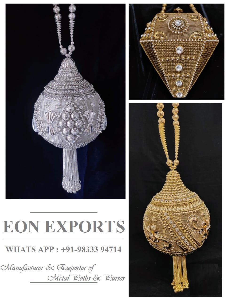 Metal Potli Exporters, Manufacturers, Suppliers, Wholesalers, Wholesale, Retailer, Factory, Dealers, Distributor, Online, Store, Shops From India Mumbai​. Designed for special occasions, parties, weddings etc. This metal clutch is the perfect match with your style giving you a traditional look