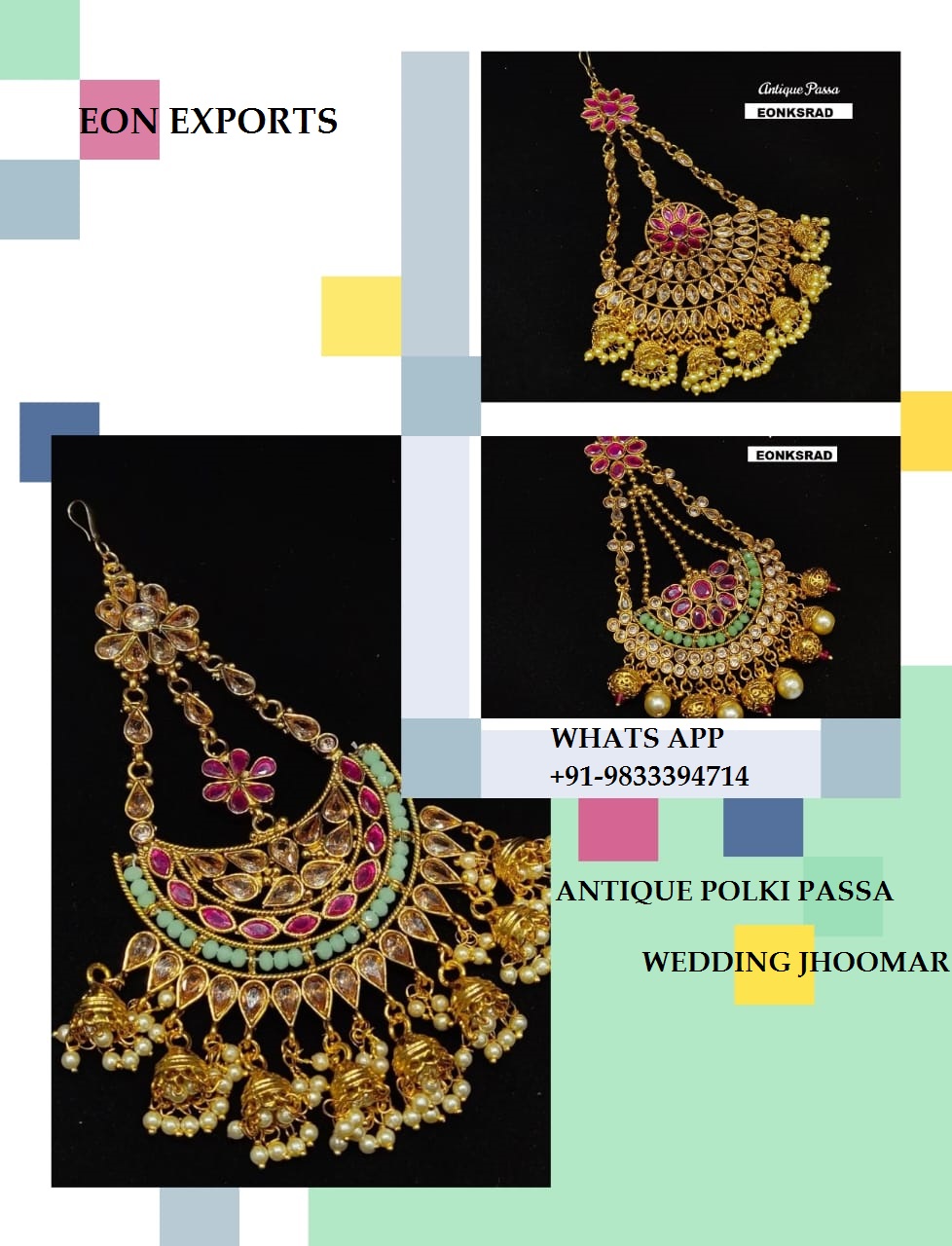 Eon Exports Jewellery is the perfect choice. An Array of nature inspired Passa, on a popular motifs and, accentuated with sparkling diamonds. It matches the sensibility of the modern Indian woman, while offering jewellery for western and traditional attire.